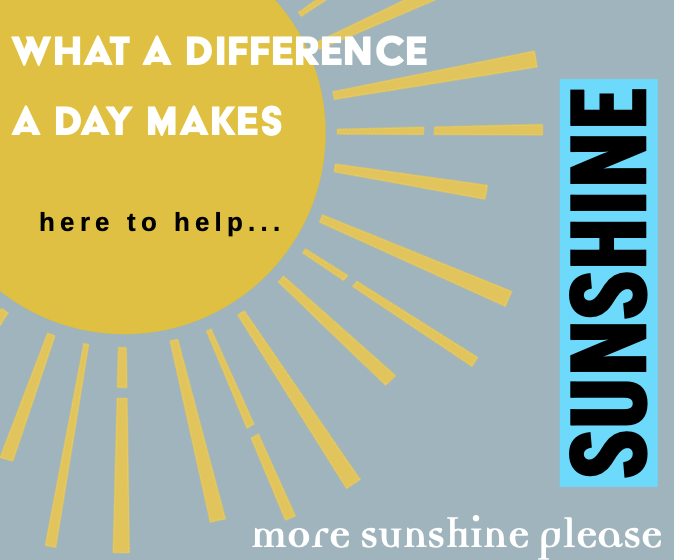 What a difference a day makes — here to help. More sunshine, please!